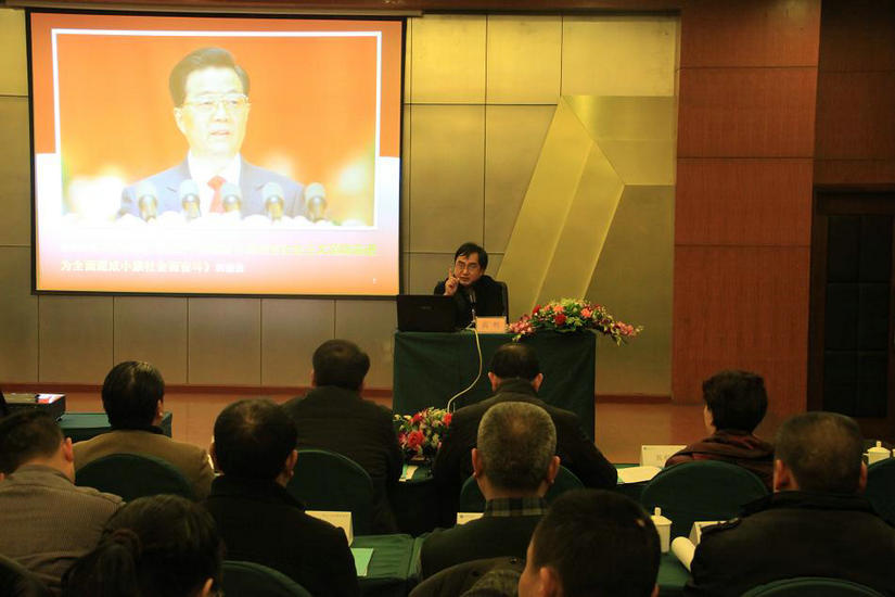2013年1月20日,四川高德娱乐水务集团有限公司在雅乐酒店会议室举办党的十八大精神学习宣讲会,集团董事长费功全带领集团和各子公司党员、干部认真学习党的十八报告精神。