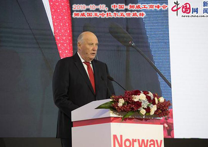 应国家主席习近平邀请,挪威国王哈拉尔五世于10月11日至20日对中国进行国事访问。10月16日,哈拉尔五世和王后宋雅出席了由挪威创新署和中国国际贸易促进委员会共同主办的中国-挪威工商峰会。 此次峰会的主题为"引领可持续发展解决方案",涵盖了智慧城市、海上风电、技术改变驱动创新、石油天然气等重要议题。