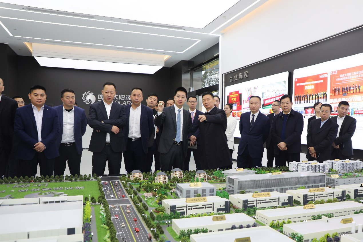 费功全董事长一行先后参观了通威集团体验中心、通威太阳能成都三期A1展厅、A1智能制造电池生产车间、永祥新能源厂区,全面了解了通威集团37年的发展历程、未来规划、产业布局、品牌成果以及发展愿景等,并对通威农业与新能源协同发展的创新模式表示高度赞赏。