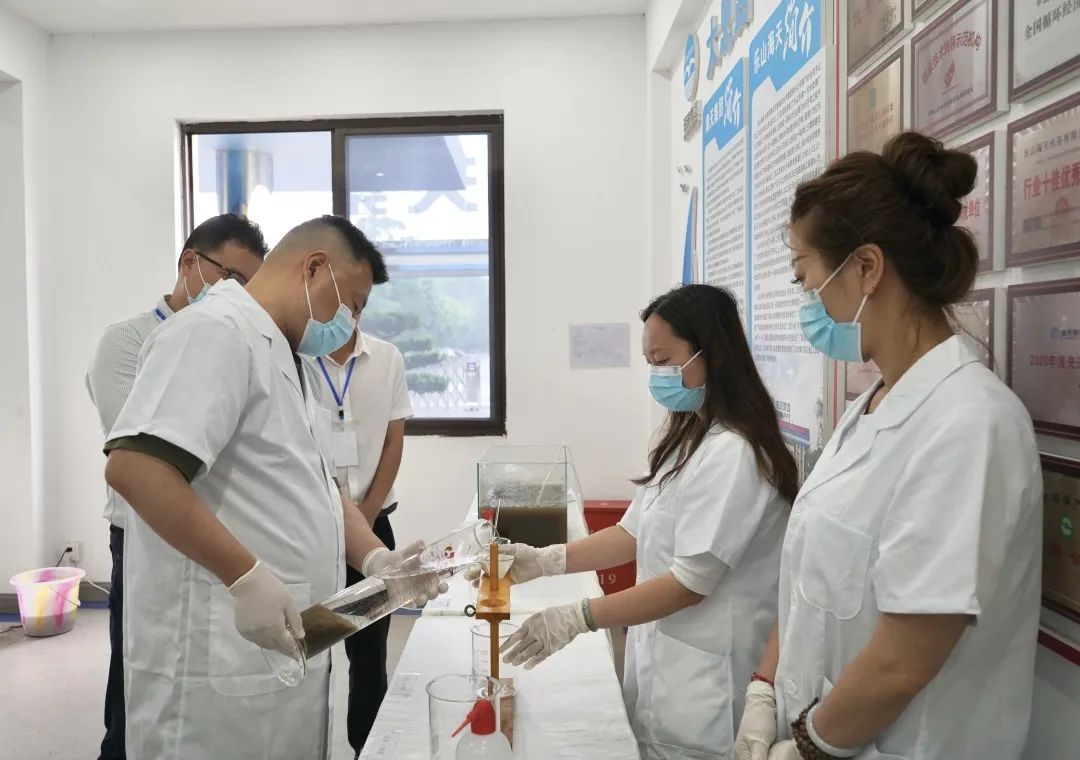 在预处理段和污水排放口,工作人员现场提取了同计量的进出水,参观代表上前仔细观察,为乐山高德娱乐高效的污水处理能力点赞。